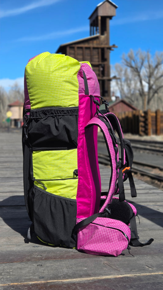 This 28 L pack was originally created for myself to set the self-supported Fastest Known Time of the Oregon section of the Pacific Crest Trail in September 2023. The vest is extremely comfortable, complete with 8 pockets. Available in custom sizing, fabrics, and features.