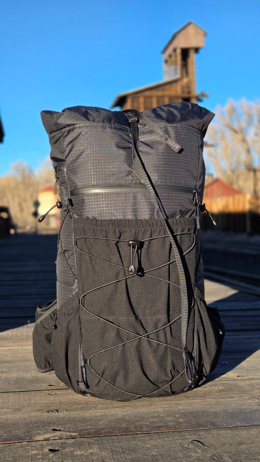 This 28 L pack was originally created for myself to set the self-supported Fastest Known Time of the Oregon section of the Pacific Crest Trail in September 2023. The vest is extremely comfortable, complete with 8 pockets. Available in custom sizing, fabrics, and features.